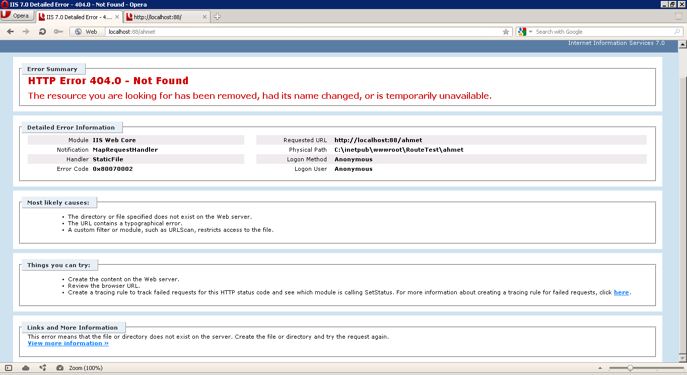 }如果我直接请求文件本身,我就可以访问default.aspx,但是除了'default.aspx‘之外,当我向一个入口发出请求时,我会从静态文件处理程序中得到404个错误。