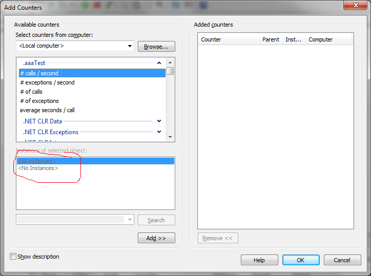 到目前为止,我可以在perfmon中看到实际的类别,但是我看不到任何实例(见图),甚至我非常确定应用程序正在运行并且实例是存在的,就像您在附加的源代码中看到的那样。