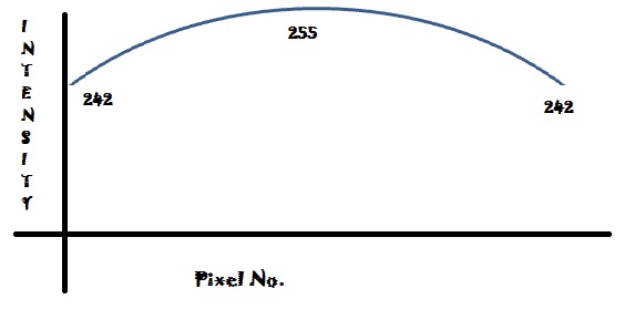 假设你从照相机上拍摄了一张照片(假设是完全白色的),你的对象被放在桌子上,相机就在它上方的垂直方向上。与边缘反射的光线相比,从摄像机垂直向下照射在图像中心的光的强度将更强。你测量图像中任何一条线的像素值,你会发现像上面所示的强度曲线。因为我暂时没有相机,所以我想模仿这种情况。如何做到这一点?