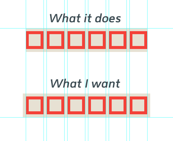下面是一个示例(Photoshop,不完全按照上面的代码),我试图用米色父元素上的左右填充来实现的图像:
