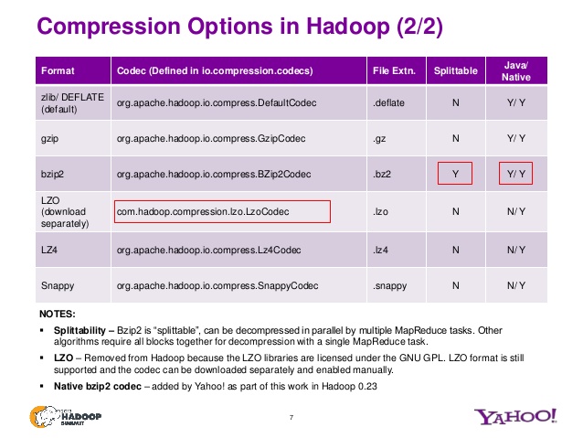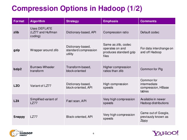 但是,在使用压缩时要考虑的一件事是压缩方法是否支持拆分文件--也就是说,您可以随机地查找文件中的某个位置并恢复压缩流(例如,GZIp不支持拆分,BZip2支持)。