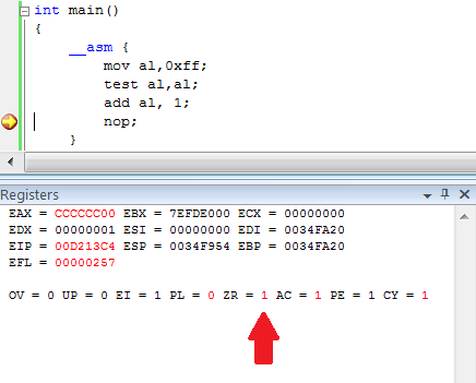 add al , 1 ; CF=1,AL=00AL的值等于零,那么为什么零标志没有设置为1呢?