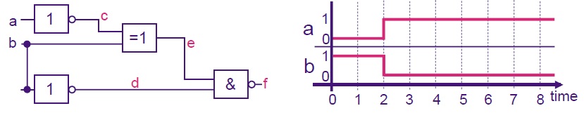 We consider the digital circuit and the value of its inputs a,