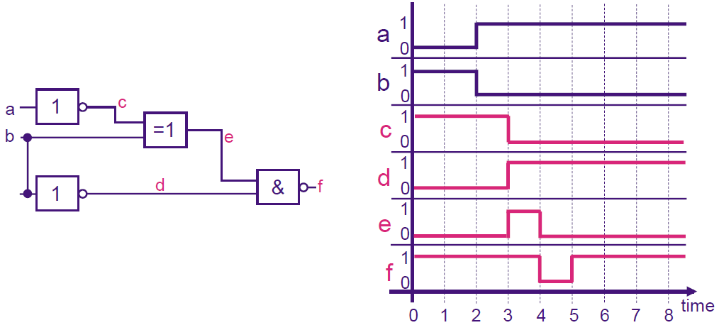 there is a gate delay of exactly one time unit (i.e. the gate