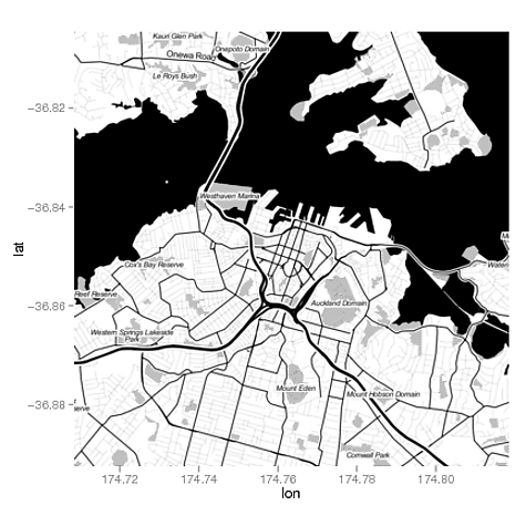 map <- get_map(location='Auckland', source="stamen", maptype="toner", zoom=13)