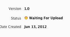 我在iOS sdk中进行应用程序内购买,我完成了所有步骤,比如在iTunes中创建应用程序和在管理中创建非自耗应用程序,iTunes connect.my应用程序状态是等待上传,就像下面的屏幕截图: