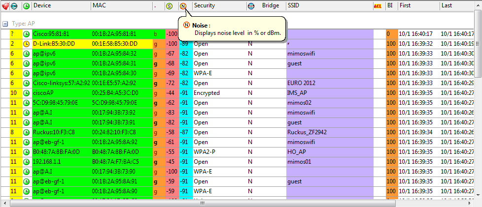标头'N‘的蓝色列是指噪音级别。请注意,当我们购买WiFi软件时,它还附带了一个专有的驱动程序。