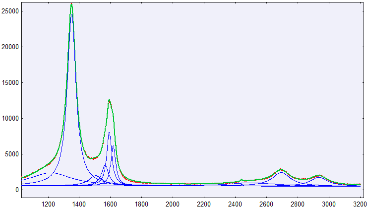 我能够使用峰席将曲线拟合到x/y数据集,如下所示。这是一个线性背景和10个洛伦兹曲线。