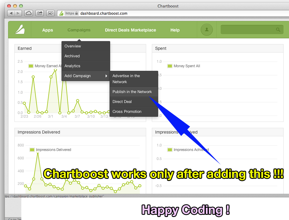 现在它正常工作了。我们需要在我们的chartboost帐户中增加发布活动。这里