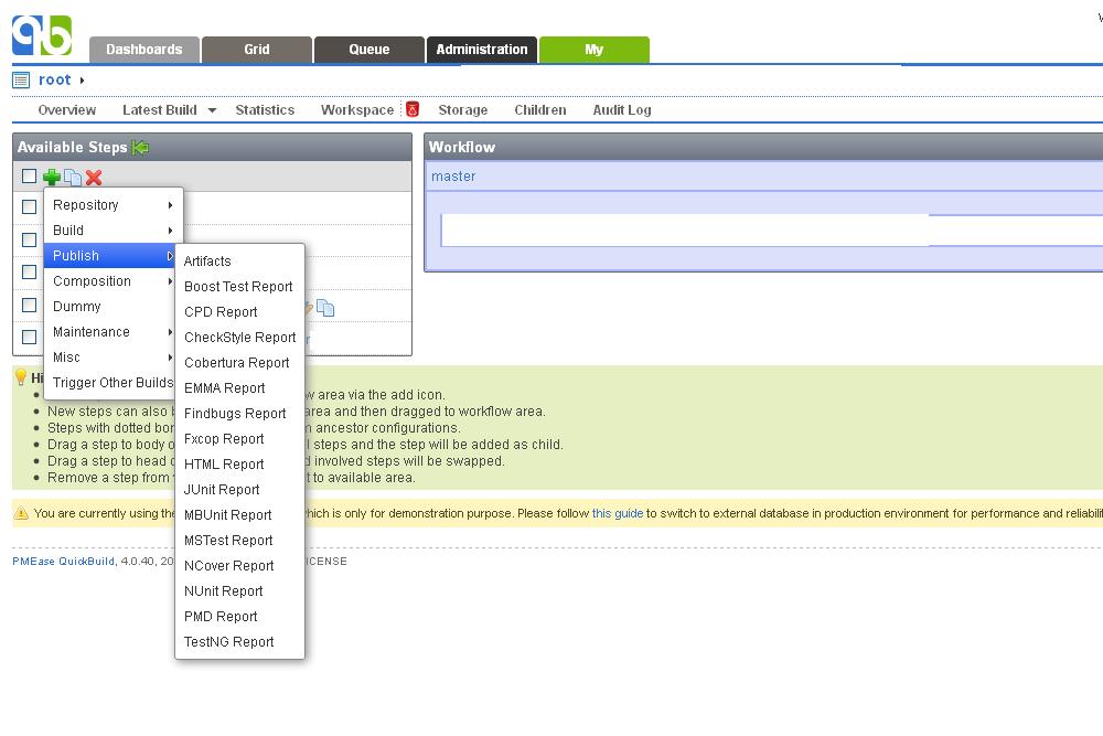 在QuickBuild ->步骤->发布下,有许多选项可以发布结果: