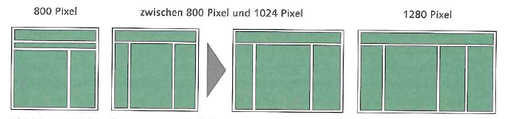 流体与弹性布局 流体布局定义为视图的百分比。当窗口大小发生变化时,布局的尺寸也相应地发生变化。文本和图片保持的大小。 固定和流体布局之间的混合形式是弹性布局。元素宽度以em表示,这取决于字体大小。因此,布局不会在窗口大小更改时更改,而是在字体大小更改时更改。从原则上讲,这是大多数浏览器通过Page (CTRL+Mousewheel)提供的行为。
