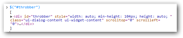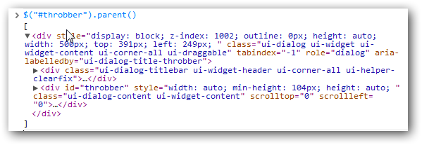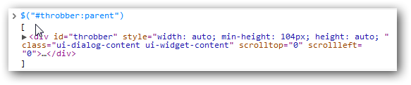 在chrome中,如果我在呈现对话框后设置了一个断点,如果我按预期做了$("#throbber:parent"),它会选择自己: