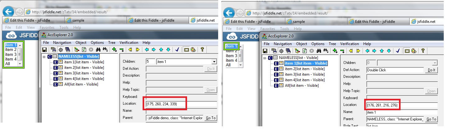 我希望在Html中创建一个html列表框,这样选项元素的左上角坐标和select元素的左上角之间没有空格/间隙。默认情况下,它们之间大约有3px间隙(如可访问性资源管理器所示)。