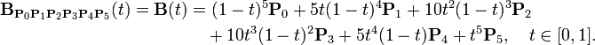 在维基百科的一篇文章中,你发现了对任意n度Bézier曲线的一章概括。在显式定义一节中,甚至有一个n=5的例子。