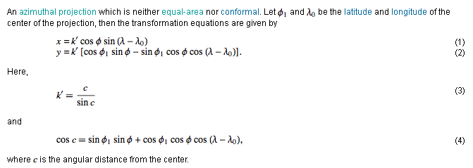 // http://mathworld.wolfram.com/AzimuthalEquidistantProjection.html
