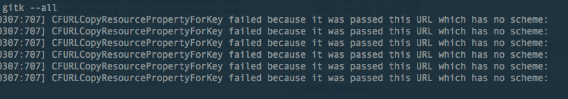 它可能是由xCode引起的,当我尝试使用gitk或gitk时--所有这些都在终端中。它在山狮升级后开始出现。谢谢:)