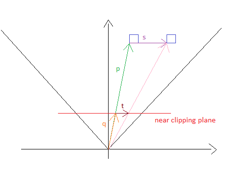 现在你把鼠标拖动到向量t上。使用截距定理,你可以很容易地计算出向量s,根据这个向量,p必须被翻译成“保持在光标下面”:
