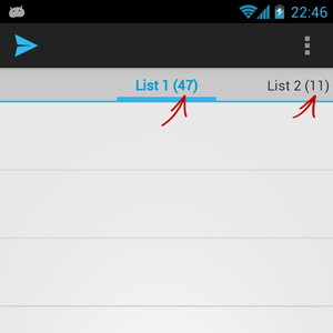 我想向用户展示行的数量,并认为最好的位置是在Fragment标题旁边的ViewPagerIndicator。为了更好地理解,我提供了一个示例图像: