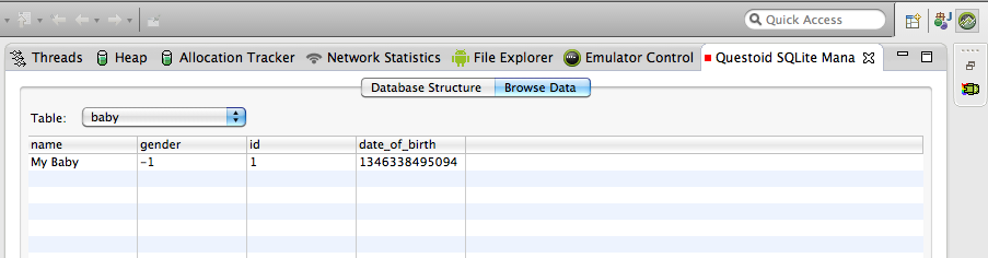 data/data/your.package.name/databases您可以将Questoid和XML浏览器插件安装到Eclipse中,并能够从Eclipse本身浏览数据。