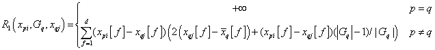 ${{R}{1}\左侧({{x}{pi},{G}{q},{qj }}\右)=\,\左{{left{矩阵} +\infty & p=q \\底座{l=1}{{d}{mathop\}}\},({{x}{π}\左l\右-{x}{qj}}\左l\右)\左(2({qj}})\左l\右-{x}{q}}\左l\右)+({x}{{π}}\左l\右-{}\左l\右)(\左{q}}\右1))/|{{G}{q}\\右)& p\ne Q\\end{矩阵}\右。$