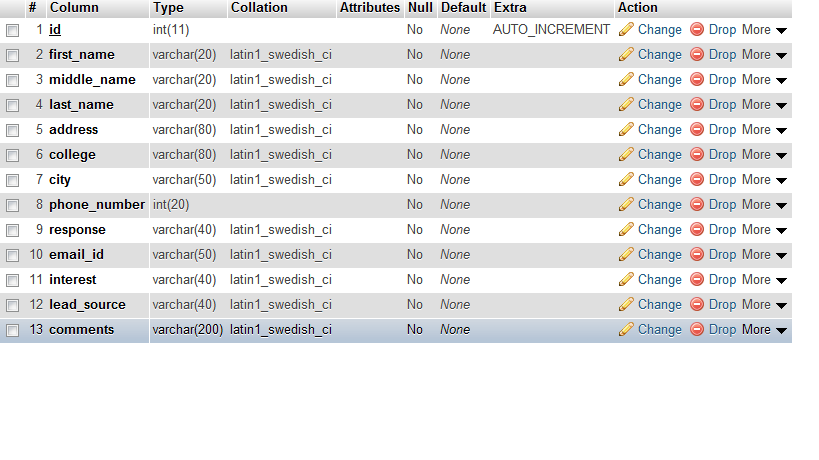 我的数据库里有两个表,一个叫学生,用来存储有关需要打电话的人的信息,另一个叫电话,在打电话时只记录下来。