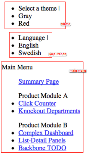这就是我们如何开发boilerplatejs示例应用程序的方法。例如,菜单、主题和本地化组件是由开发人员作为简单的“无序列表”开发的,它们在完成时如下所示(只需通过Chrome Developer工具删除主题css链接,您就会看到相同的内容):