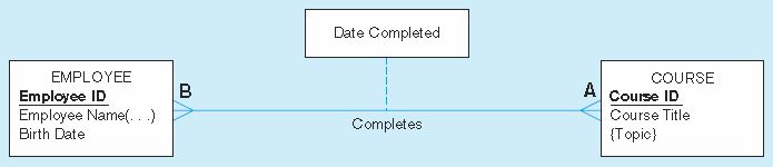 EMPLOYEE -completes----< COURSE COMPLETTION > -----completes -- COURSE课程完成将继承每个实体的标识符: