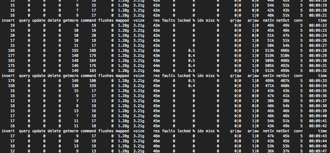 Mongostat产出: