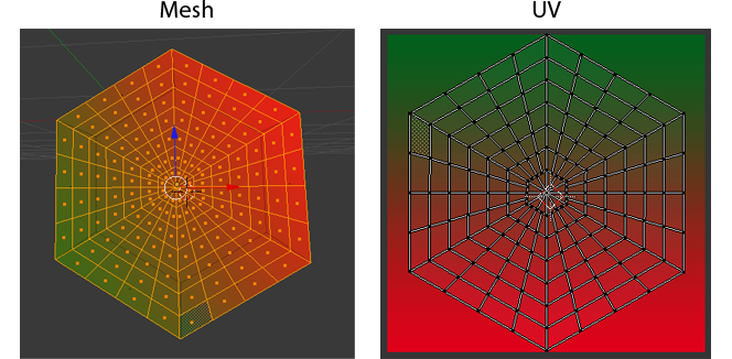 这里是我的六角形网格的参考图像和相应的紫外线地图在搅拌机。