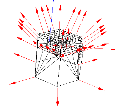 计算出的几何图形外环的顶点法线在一定程度上向外指向。这很可能是因为在computeVertexNormals()中,它们是通过平均每个相邻脸的脸法线来计算的,而模型“边”的脸法线(黑色部分)被平均为构成“帽”外环的顶点的法线计算。