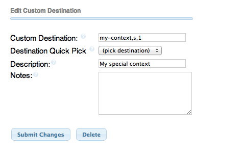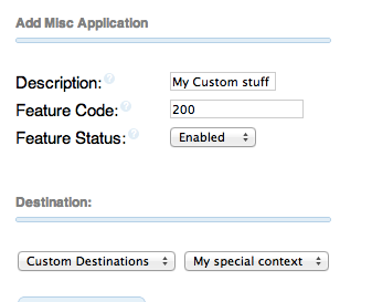 然后添加一个Misc应用程序,其特性代码为200 (如您的示例所示),并将其指向您的自定义目的地,如下所示: