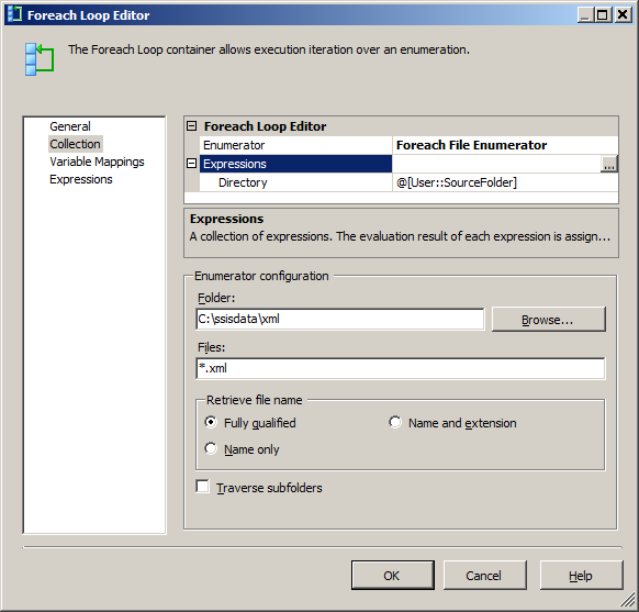 此任务将将可用文件添加到数据流中。次要注意,这将遍历子文件夹,这与我们如何配置Foreach不同。这是对第三个参数(或省略)的简单更改,使其仅限于顶层。