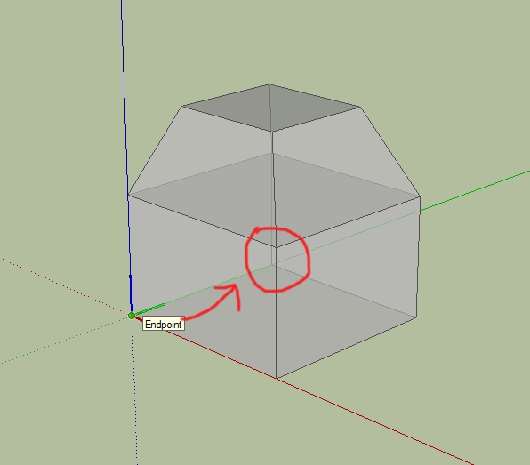 如下面所示,我试图通过使用轴工具将原点移动到这个3D对象的边界框的中心。因此,似乎很难找到中心,因为没有自动抓取来帮助我移动轴。我正在使用免费版本的谷歌SketchUp 8,我确实找到了一些方便的源代码,如插件,为我在专业版,但我没有这一点。