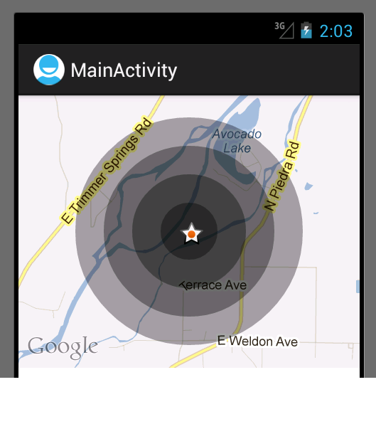 目前,在谷歌地图上绘制的圆圈非常黑暗。我需要做的圆圈little bit light with the same color,我现在有。这是否有可能通过调整油漆或颜色中的几个参数来使这个圆圈稍微轻一点呢?中间的地方更暗,不知道为什么。我只需要使它在所有的四个圆圈,我现在有轻。