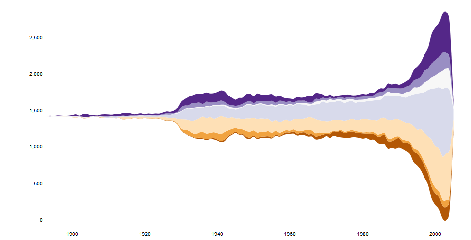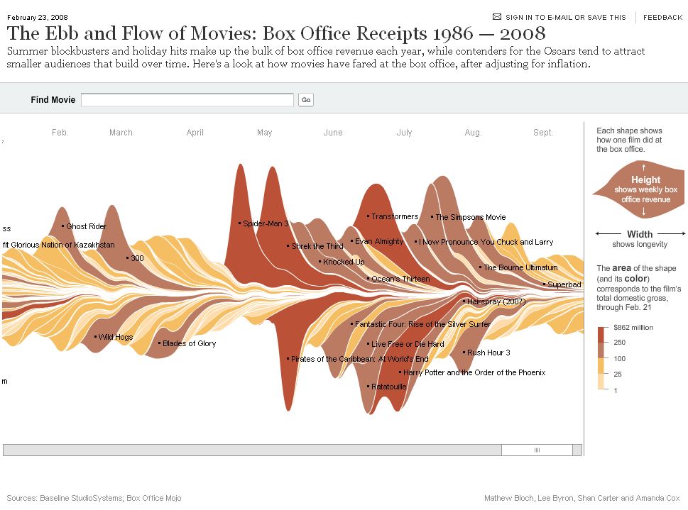 流图是叠加图的一个变体,它在基线选择、层序和颜色选择方面对哈弗雷等人的ThemeRiver进行了改进。