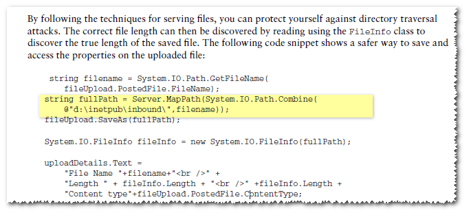 所以我正在读一本关于asp.net安全性的书。其中一个部分是:如何防止目录遍历文件名(黑客文件名)。