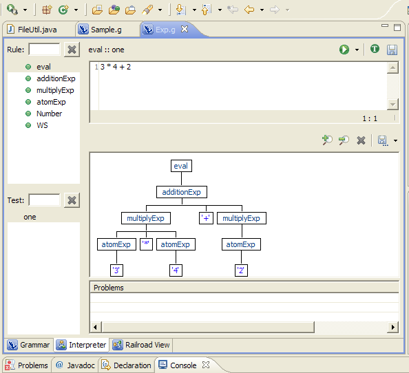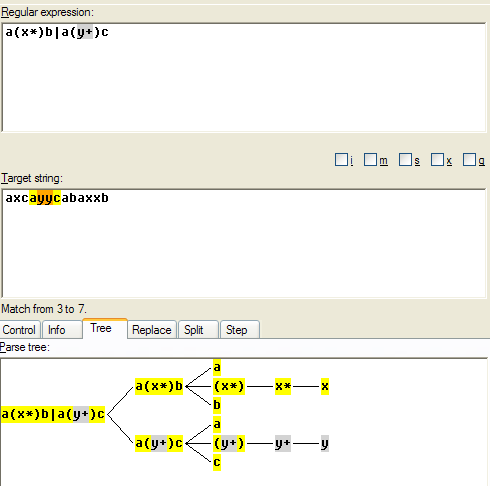 安特尔可能比您想要的要多;它是一个lexer和一个解析器,它将生成Java、C、C#或Ruby。有一个非常棒的Eclipse插件。如果要解析regex,可以只使用lexer。这里是Eclipse SR2教程Expr语法的屏幕截图。