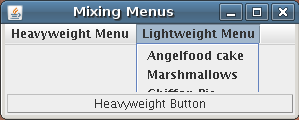 在java 6之前,当有人向容器中添加swing组件时,会出现什么问题?(我的应用程序有自定义的mdi,每个窗口都是一个awt面板。我真正想做的是使用与我的窗口相同的awt面板,并使用java1.5用swing实现其中的所有东西)