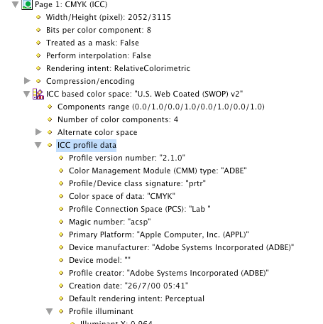integer value: 1 但是,我无法在元数据中找到在图像颜色空间上使用的ICC配置文件数据,您可以通过acrobat看到该数据: