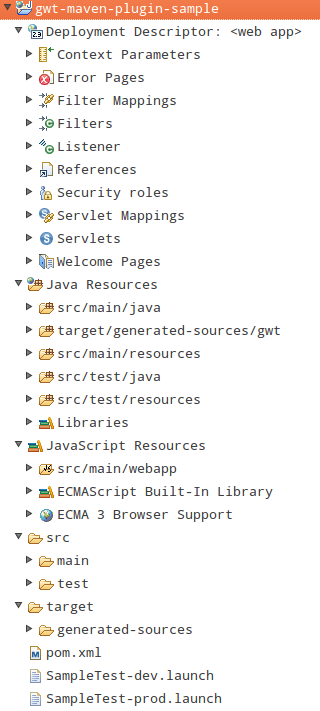 ( 5)根据gwt-maven-plugin的指示,进口项目应形成以下类似的项目结构: