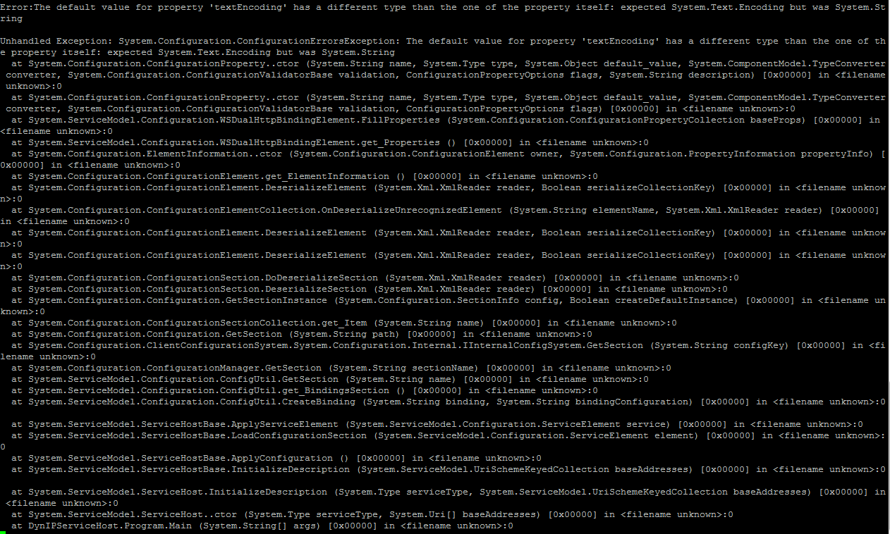 运行时上下文:是一个WCF服务,它使用由Mono在Linux上运行的WSDualHttpBinding。我使用app.config,创建一个使用EndPoint的WSDualHttpBinding
