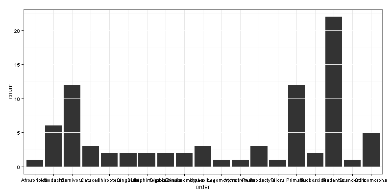 ggplot(msleep, aes(x=order)) + stat_bin() + theme_bw() +