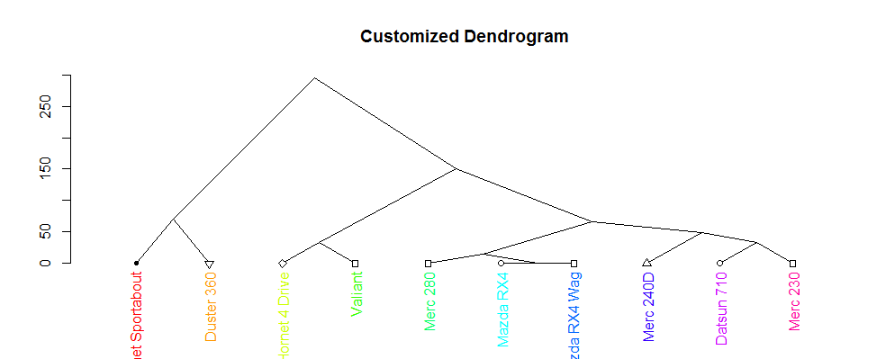 mycols <- grDevices::rainbow(attr(hcd,"members"))
