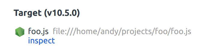 访问chrome://inspect,在设备列表中,您应该会看到一个条目,上面写着Target (<process.version>),并附带了一个检查链接。