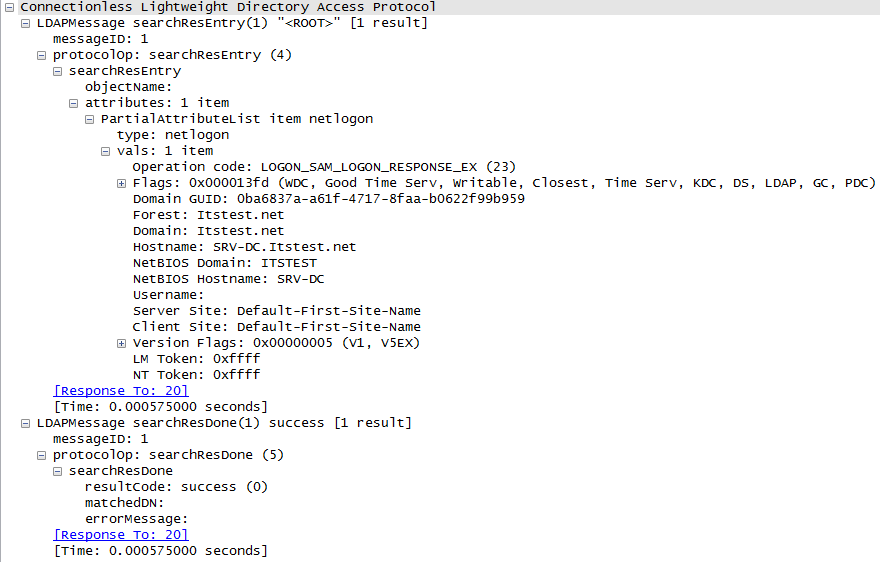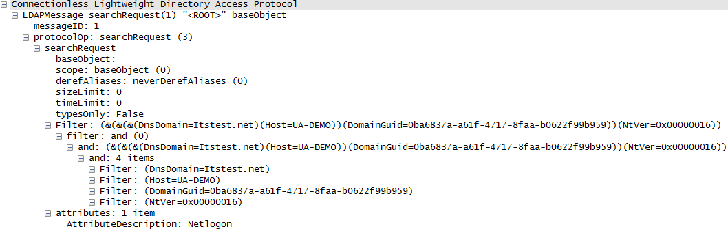我终于明白了问题所在:根据此页:“然后客户端使用这个IP地址在DC上建立到LDAP服务的UDP连接,并在RootDSE中查询NETLOGON属性。这个属性实际上并不存在于目录中,而是用于执行LDAP平。”更多信息:http://msdn.microsoft.com/en-us/library/cc223811(v=prot.20).aspx