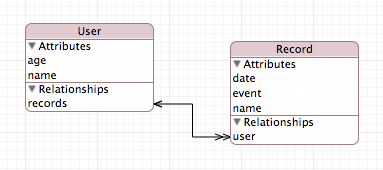 ...然后,每次创建新记录,以及将记录添加到用户记录集时,也要在记录对象上设置用户。这将使获取记录变得更加容易,而且它还允许核心数据保持数据完整性: