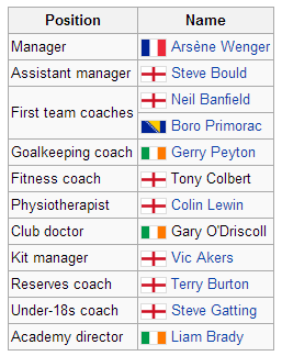 在第二个例子(F.C.)中,它没有thead元素帮助这一事实。-允许我们假设这一页本身就是。阿森纳是表中数据的主题。