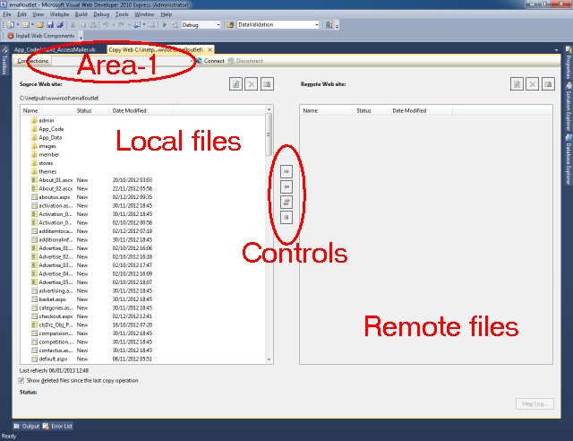 区域-1是您输入FTP或HTTP地址的服务器,您将上传te文件。Loacl-Files显示您已完成的网站文件远程文件这显示服务器控件上的文件这些按钮用于将文件上载或下载到服务器