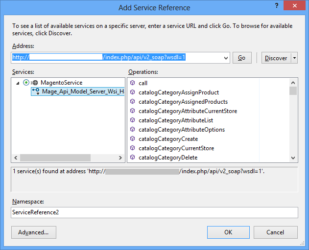 当我尝试在Visual中使用“”函数时,它会找到服务和所有操作,但是当我单击OK时,它不会生成任何内容。也就是说,Reference.cs文件几乎是空的(只有一行带有命名空间)。