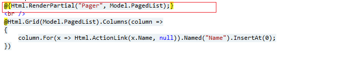 在我的视图中调用Pager.cshtml。请看下面的图片